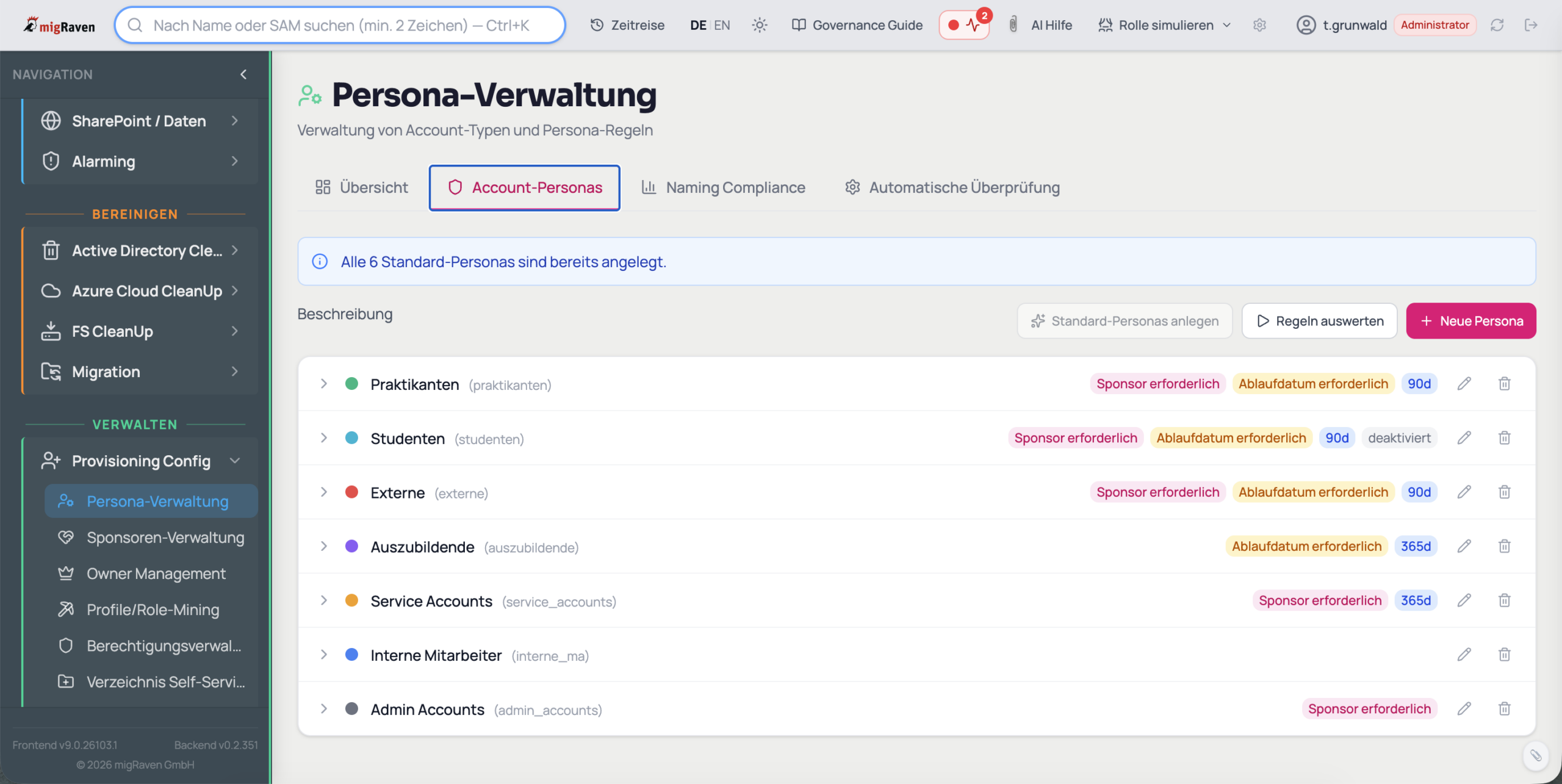migRaven.MAX identifiziert Service Accounts, deren Berechtigungen, Nutzung und Verantwortlichkeiten zentral und nachvollziehbar.