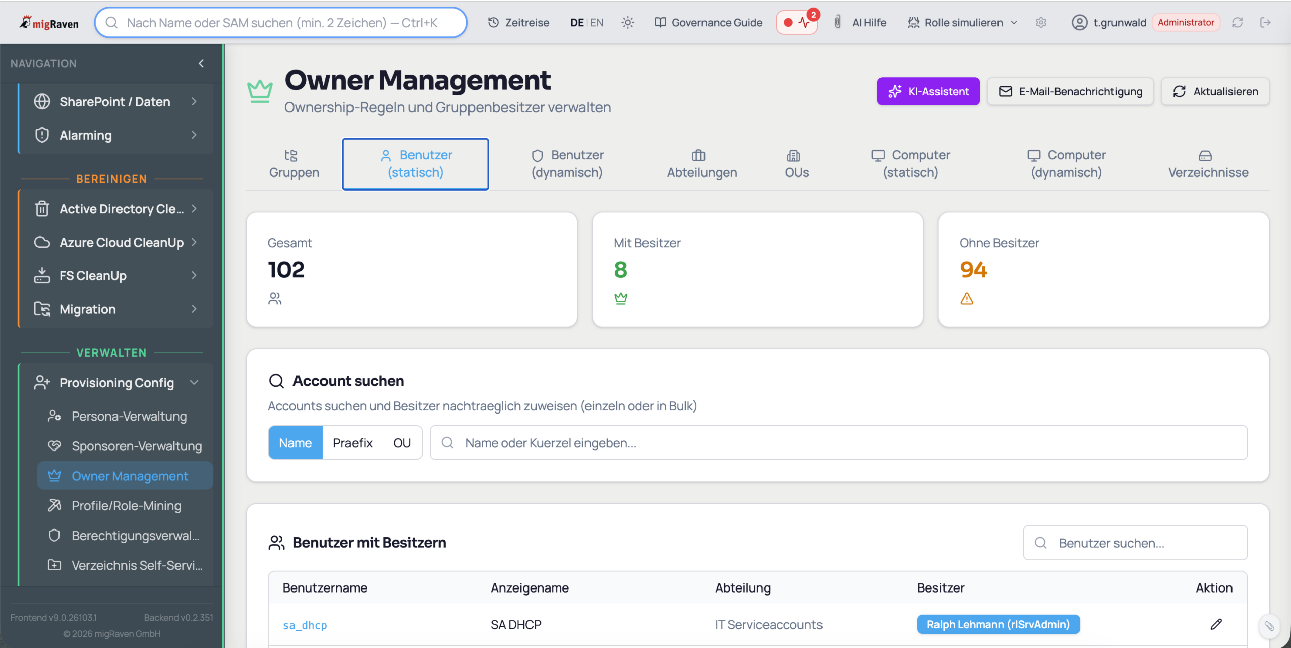 Statt jede Rechtevergabe über die IT laufen zu lassen, verlagert migRaven.MAX Verantwortung dorthin, wo sie fachlich hingehört: zu den tatsächlichen Data Ownern.